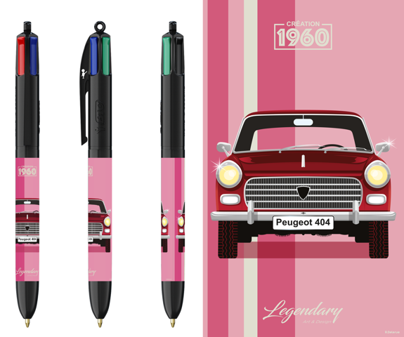 / Stylo BIC 4 couleurs – Peugeot 404 – Bordeaux